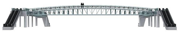 此外,在上海還有一個具有特殊意義的標志性工程——矗立在上海灘最繁華的徐家匯地區的徐家匯全鋁高架橋。它是國內一座完全自主設計、自行生產、自行建造的鋁合金結構橋梁,也是目前國內的三座鋁合金橋梁之一。于2007年9月在徐家匯漕溪北路投入運行(見圖4)。該橋外形類似外灘“白渡橋”,連接徐家匯第六百貨以及太平洋百貨,主材為6061-T6鋁合金,全部由鳳鋁提供,單跨23m,寬度6m,主橋高2.6m,橋凈高4.6m。由于徐家匯地區地下有地鐵通過,為了確保地鐵運行的安全,鋁合金天橋自重僅15噸,最大載重量可以達到50噸,遠低于“地鐵上建設天橋不得超過70噸”的標準,有效地緩解了該路段人行通道擁擠的狀況,并為徐家匯的各大商場帶來了更多商機。